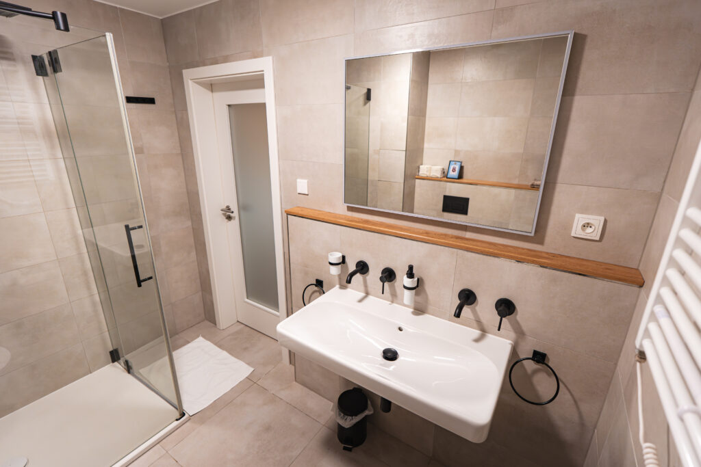 Apartmán se nachází v přízemí a je přístupný bez schodů, takže vstup je pohodlný i pro hosty s omezenou pohyblivostí. Koupelna a ložnice však nejsou plně uzpůsobeny pro vozíčkáře, proto doporučujeme ověřit konkrétní potřeby předem.