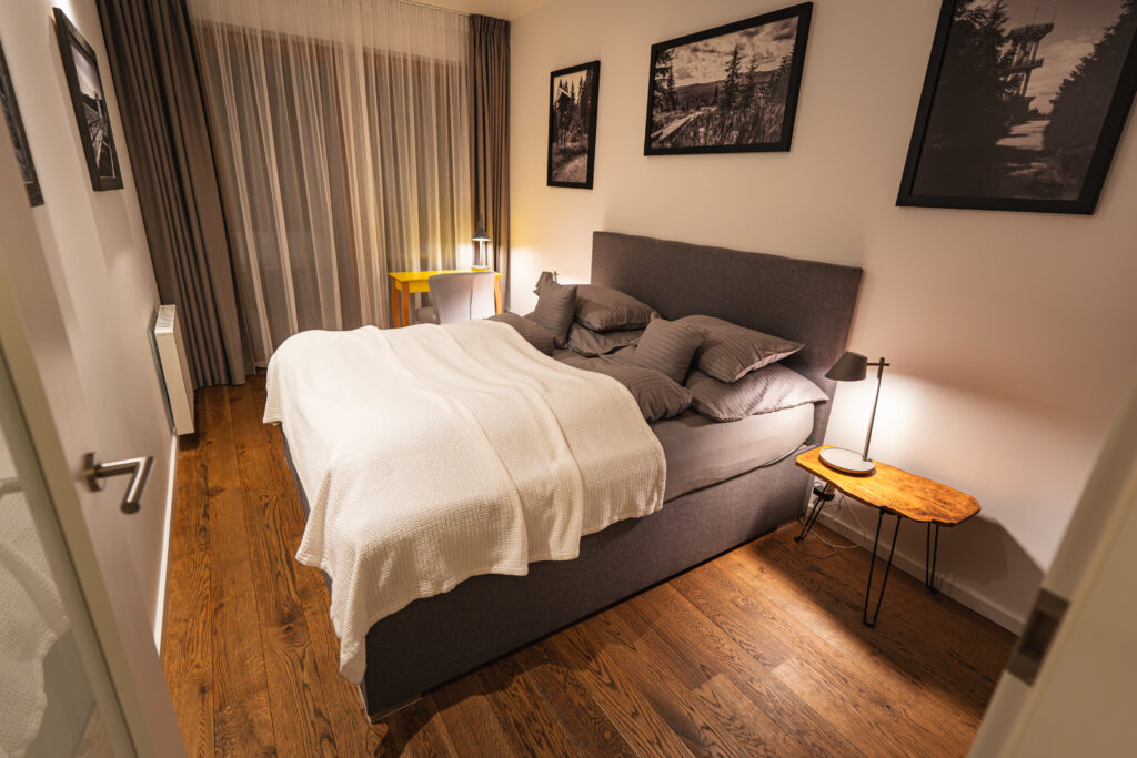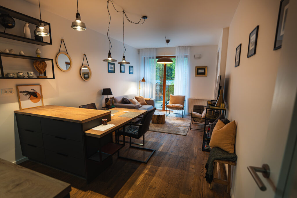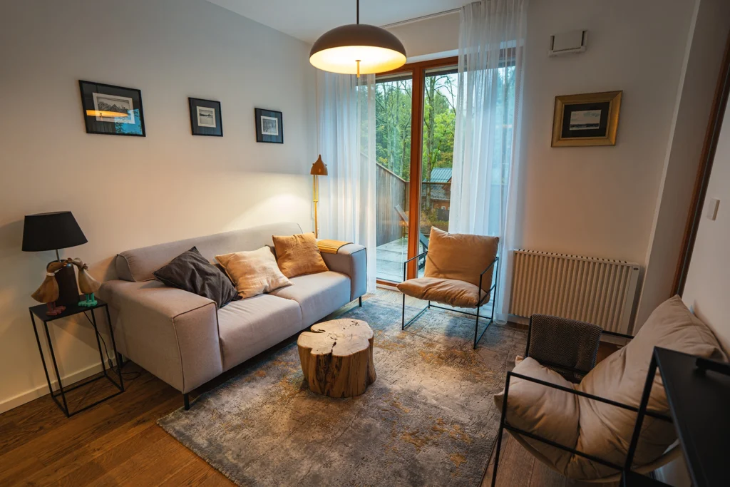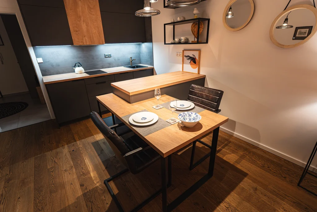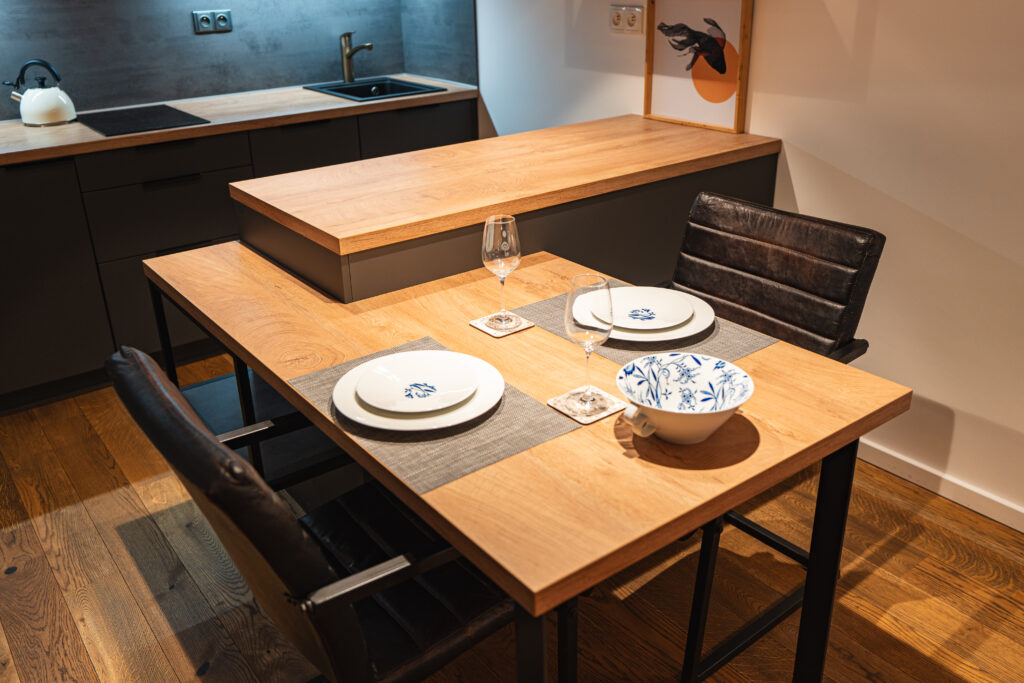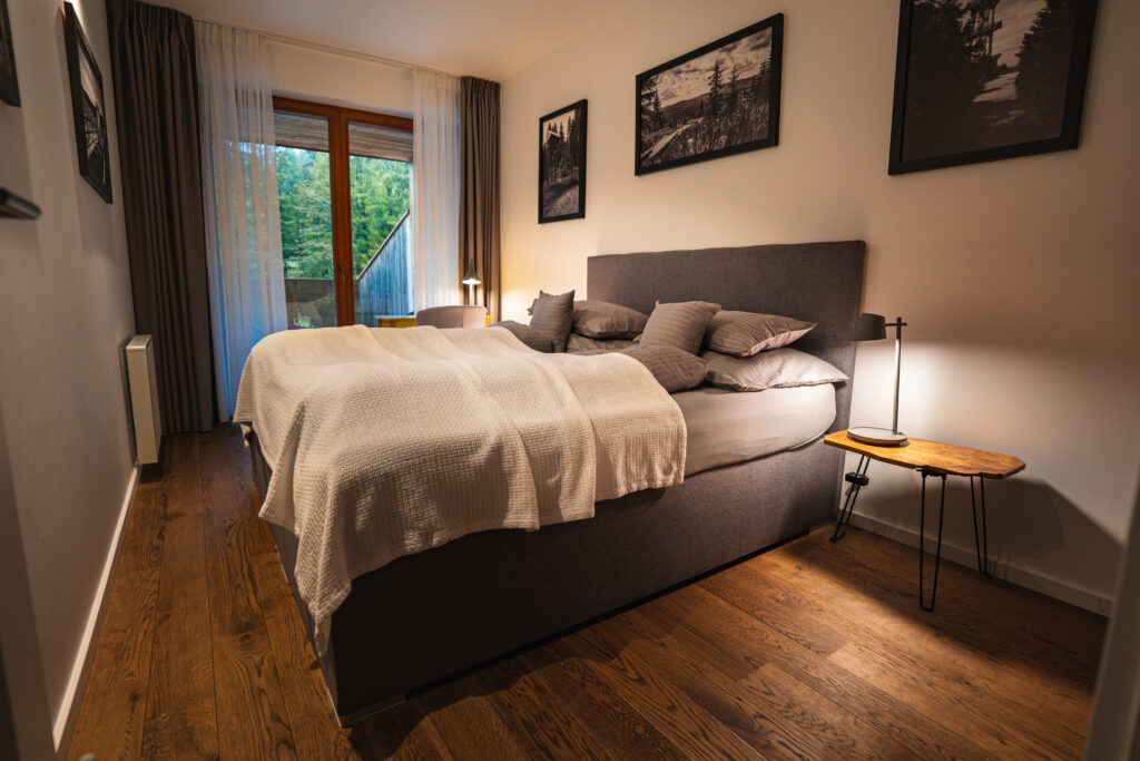 Stylový apartmán pro dva dospělé s plně vybavenou kuchyní, terasou a chytrou domácností v Jizerských horách.