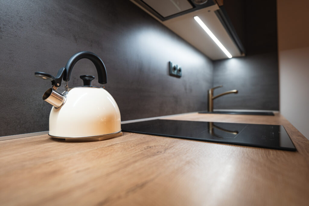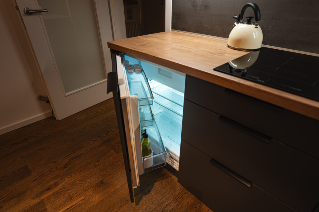 Ano, plně vybavenou. Součástí apartmánu je moderní kuchyňská linka s varnou deskou, troubou, myčkou i lednicí s mrazákem. Nechybí ani kávovar, rychlovarná konvice a nádobí.